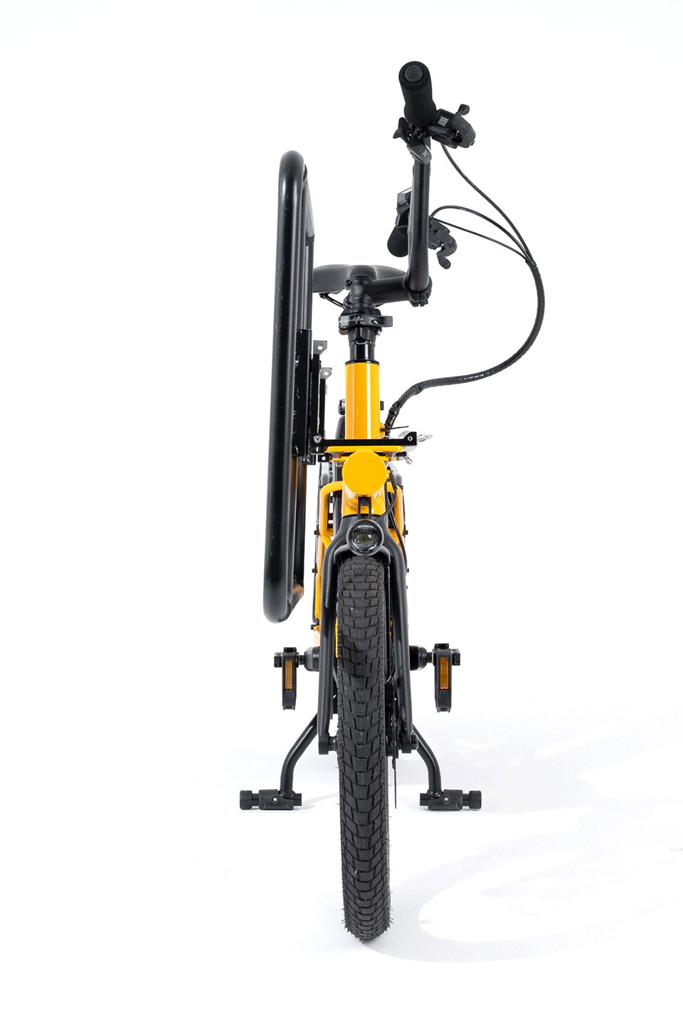 Le seul vélo compact qui transporte tout : les enfants à l'arrière et les objets (très) encombrants à l'avant.