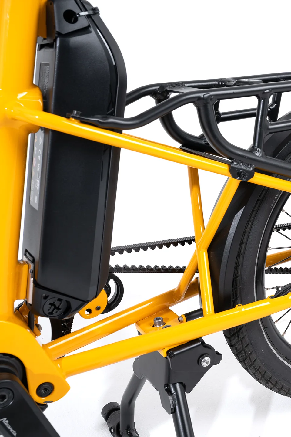 Sa compacité le rend aussi facile à manœuvrer qu'un vélo classique et pourtant son long porte-bagage arrière et sa grande plateforme avant permettent de transporter vos enfants et vos bagages.